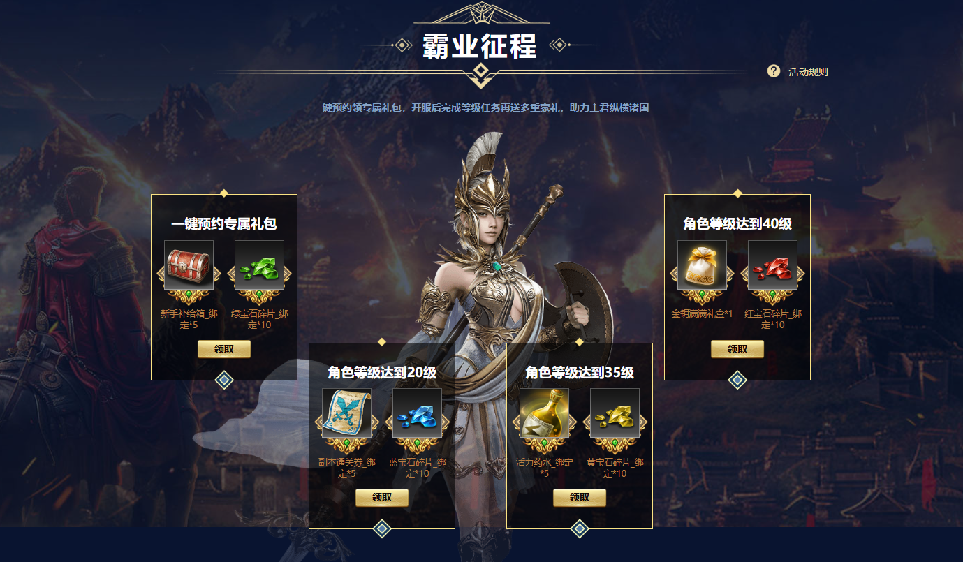 (4)国战豪礼兑换:参与国战,可在官网【福利中心】页面领取【争霸勋章】,兑换稀有道具!