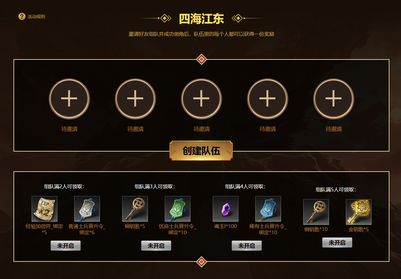 呼朋引伴,共享盛宴!邀请好友组队征战,不论几人组队成功,均可获得对应奖励。5人成队还可领取最高档奖励,直接领取稀有士兵晋升令、金钥匙等高阶晋升资源道具。与手足同袍共执旌旗,方能在乱世中铸就无人能撼的霸业根基!